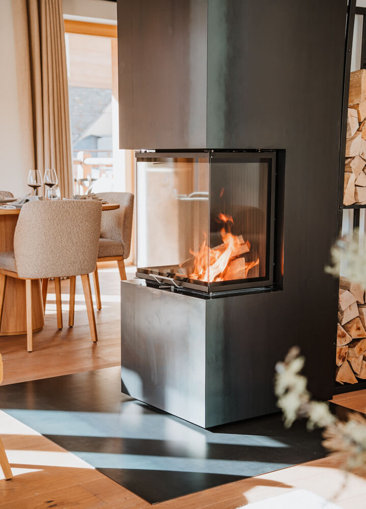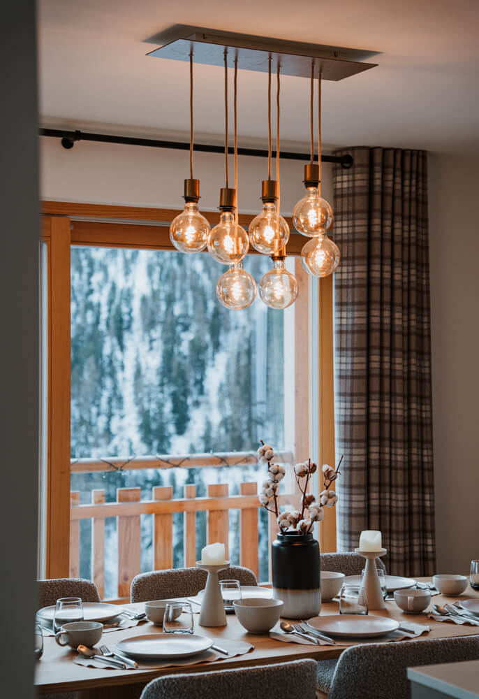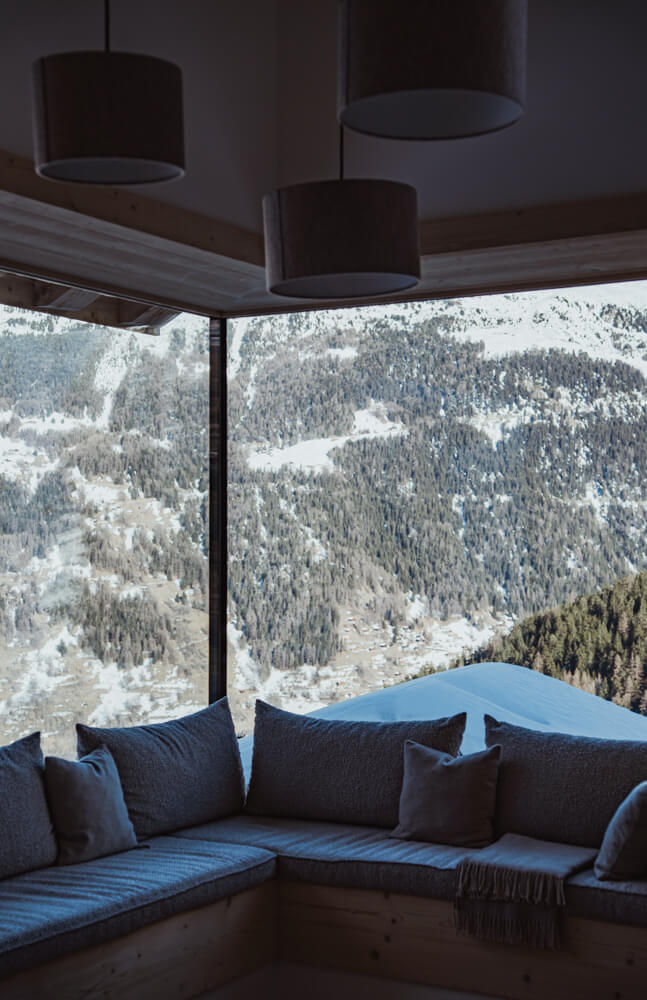 Dieses freistehende Chalet auf drei Ebenen verfügt über drei Schlafzimmer mit Doppelbett (180 × 200 cm), ein Kabinenschlafzimmer mit Etagenbett (90 × 190 cm) sowie über drei Badezimmer mit Dusche und Badewanne. Der Wohnbereich bietet eine Sitzecke mit Fernseher, eine voll ausgestattete Küche, einen Holzofen und großzügige Außenbereiche mit Panoramablick auf die umliegenden Berge von Sorebois und Nava. Das Chalet ist nach allen Himmelsrichtungen ausgerichtet, sodass Licht und Aussicht sich im Laufe des Tages ständig ändern. Zur Ausstattung gehören Haushaltsgeräte wie Waschmaschine und Trockner, Geschirrspüler, Nespresso-Kaffeemaschine, notwendige Küchenutensilien usw.