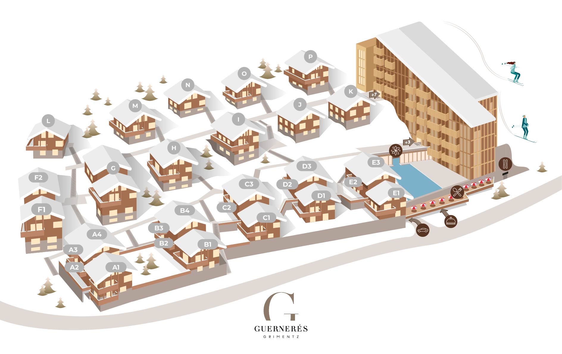 Construits sous forme de hameau en parallèle et à deux pas de la Résidence, les Chalets Guernerés 5* vous invitent à l’évasion et à la déconnexion. S’offrent à vous deux options, soit vous optez pour un chalet privé individuel et bénéficiez ainsi de grands espaces et d’une intimité totale. Soit votre choix peut se tourner vers une suite-chalet - c’est-à-dire, un chalet divisé en plusieurs appartements - pour profiter d’un séjour authentique et traditionnel en montagne, tout en étant dans un confort absolu. Choisir un chalet pour vos vacances à la montagne, c’est s’offrir l’expérience ultime pour un séjour ski d’exception.
