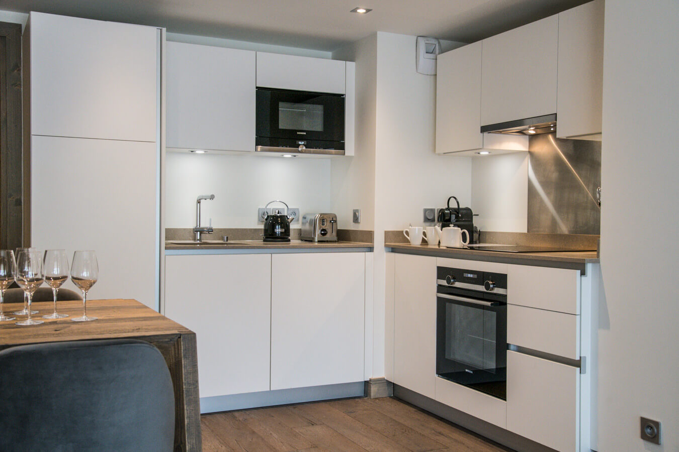 Cet appartement dispose de deux chambres avec un lit double (180*200, 160*200), d'une chambre cabine sans fenêtres avec un lit double (160*200) ainsi que de deux salles de bains dont une attenante à la chambre. La pièce de vie bénéficie d'un coin salon avec une télévision et d'une cuisine ouverte toute équipée. Un balcon ainsi qu'une terrasse aménagée de 20 m² viennent compléter l'espace. Cet appartement dispose d'appareils électroménagers tels qu'un lave vaisselle, une machine à café Nespresso, le nécessaire de cuisine, etc.