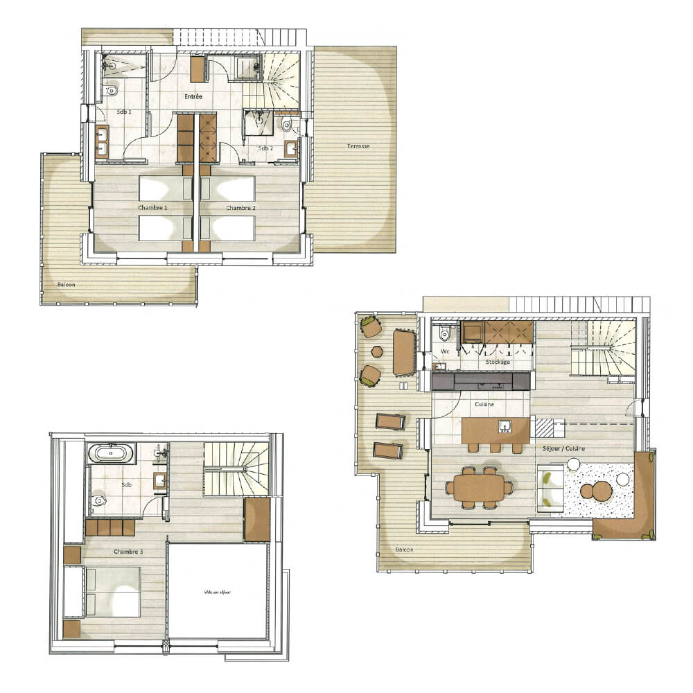 Ce chalet sur trois étages vous accueille pour un séjour inoubliable à la montagne. Parcourez son plan afin de visualiser son organisation intérieure et apprécier ses vastes espaces de vie.