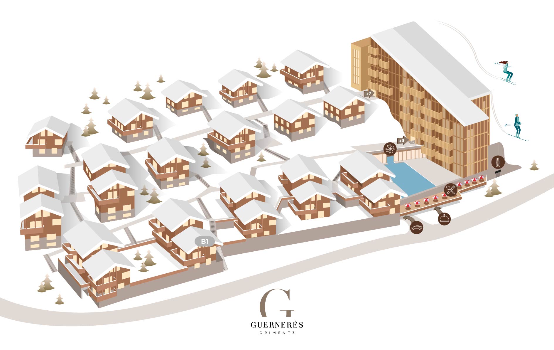 À partir de décembre 2025, le nouveau resort Guernerés ouvrira ses portes. Soyez parmi les premiers à profiter de ses appartements modernes et de ses prestations haut de gamme. Visuels à titre indicatif, non contractuels.