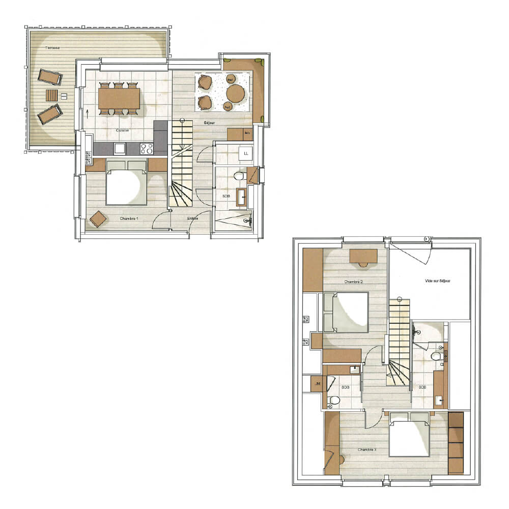 Ce chalet en duplex vous offre deux niveaux de bonheur pour votre séjour à la montagne. Découvrez le plan intérieur de ce chalet pour comprendre son aménagement intérieur et profiter de superbes espaces de vie.