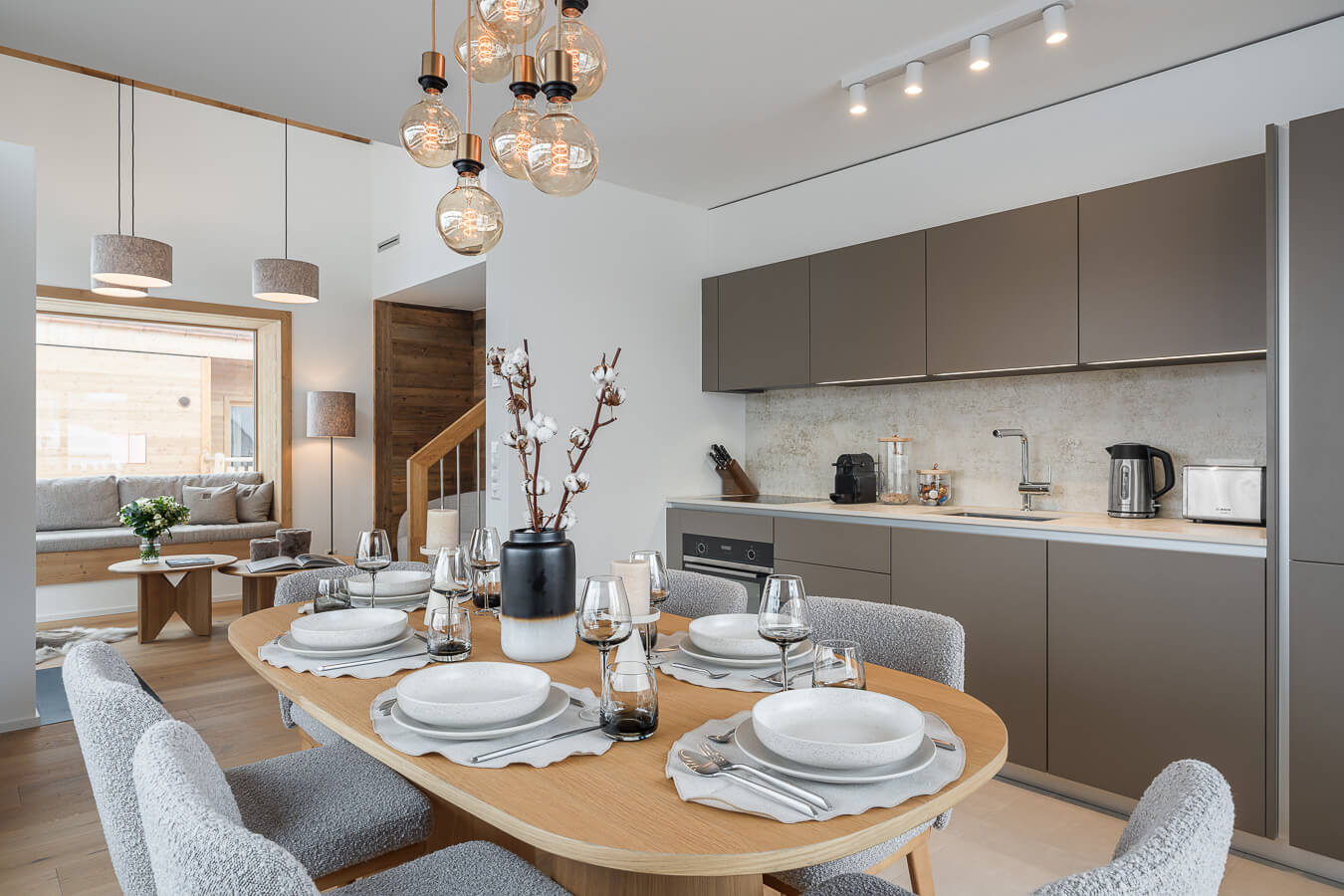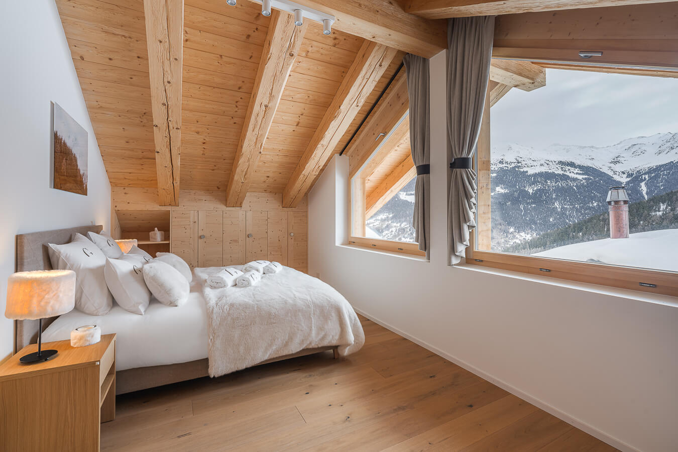 Ce chalet appartement dispose de trois chambres avec un lit double (180*200) ainsi que de deux salles de bains avec douche et une baignoire. La pièce de vie bénéficie d'un coin salon avec une télévision, d'une cuisine toute équipée, d’une cheminée à bois et d’un balcon orienté sud-ouest. Ce chalet s’ouvre sur toutes les expositions, pour une lumière et une vue changeantes tout au long de la journée. Il dispose d'appareils électroménagers tels qu'un lave vaisselle, une machine à café Nespresso, le nécessaire de cuisine, etc.