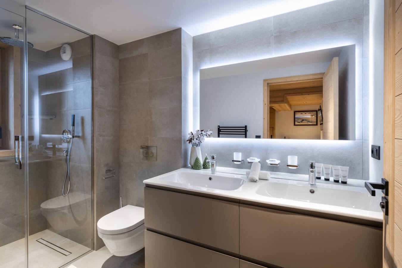 Ce chalet appartement dispose de trois chambres avec un lit double (180*200), d’une cabine avec deux lits simples (90x190) ainsi que de deux salles de bains avec douche et une baignoire. La pièce de vie bénéficie d'un coin salon avec une télévision, d'une cuisine toute équipée, d’un poêle à bois et d’un balcon orienté sud. Ce chalet bénéficie d'une triple exposition : sud, est et nord. Il dispose d'appareils électroménagers tels qu'un lave-linge, un lave vaisselle, une machine à café Nespresso, le nécessaire de cuisine, etc.