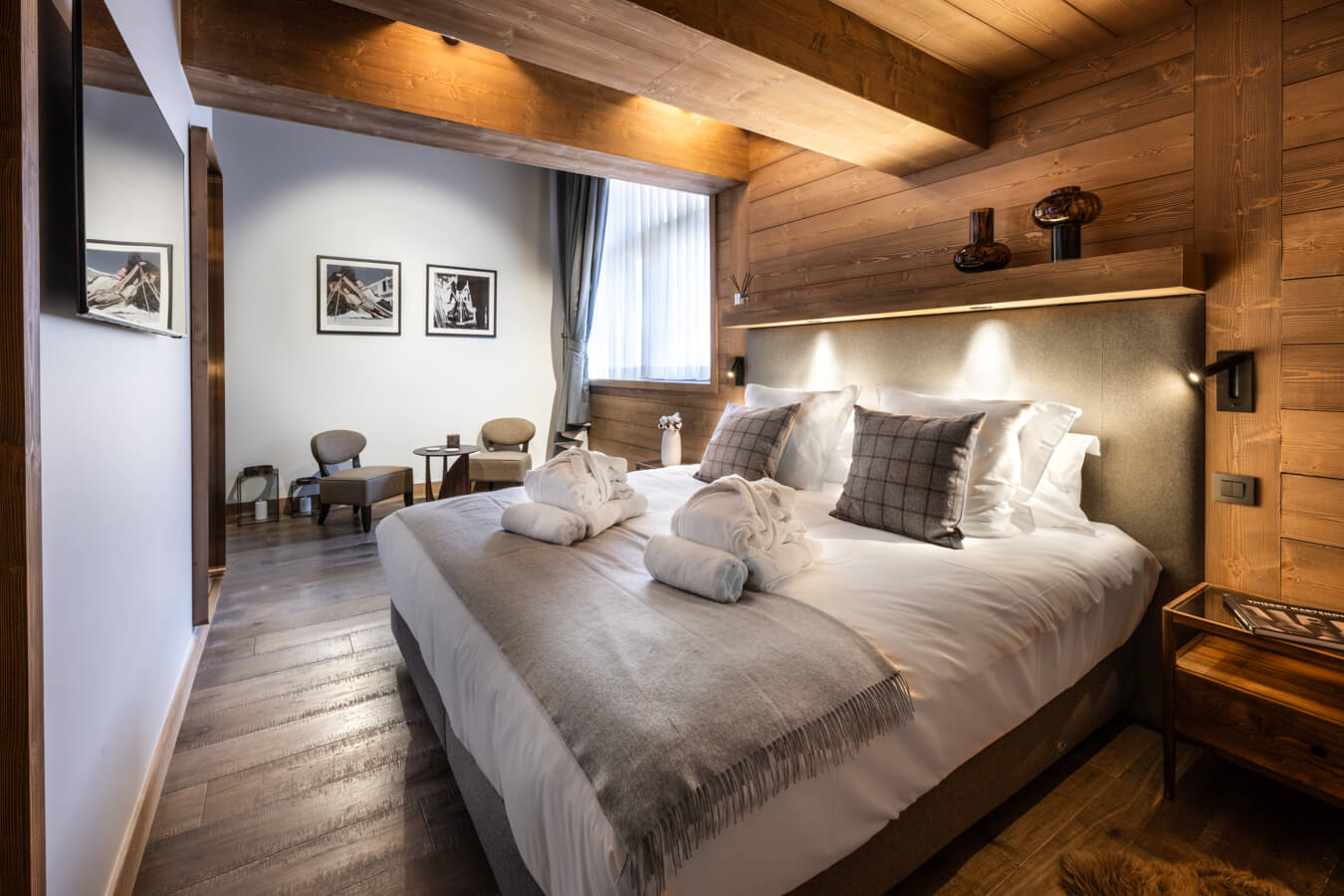 Ce chalet individuel sur trois niveaux dispose de trois chambres avec un lit double (180*200), d’une chambre avec deux lits superposés ainsi que de trois salles de bains avec douche et une baignoire. La pièce de vie bénéficie d'un coin salon avec une télévision, d'une cuisine toute équipée, d’un poêle à bois et d’espaces extérieurs dont une terrasse plein sud avec vue dégagée sur Sorebois. Ce chalet s’ouvre sur toutes les expositions, pour une lumière et une vue changeantes tout au long de la journée. Il dispose d'appareils électroménagers tels qu'un lave-linge et sèche-linge, un lave vaisselle, une machine à café Nespresso, le nécessaire de cuisine, etc.