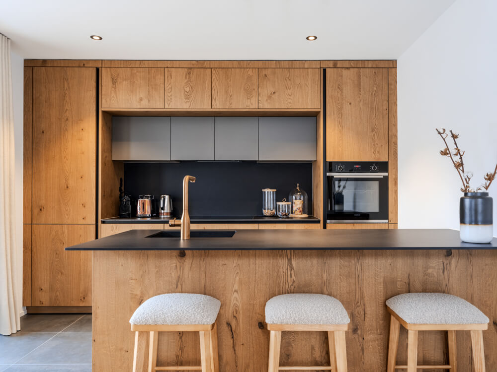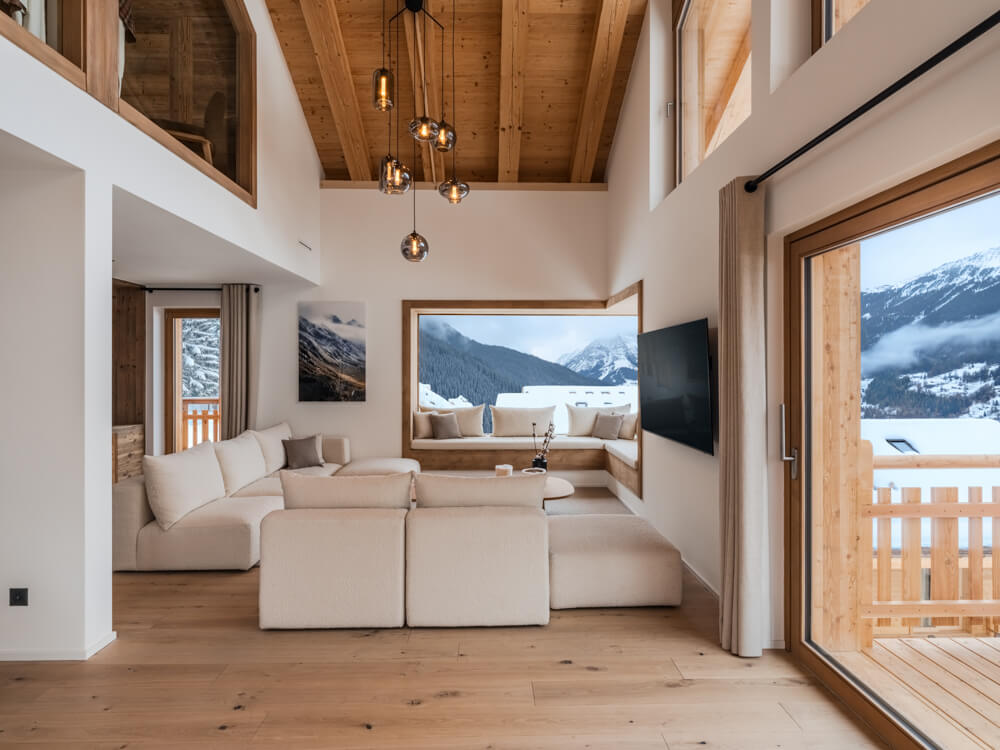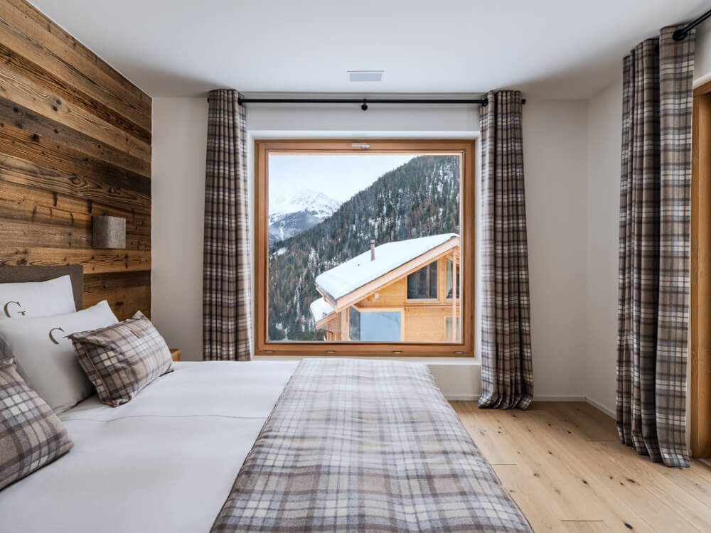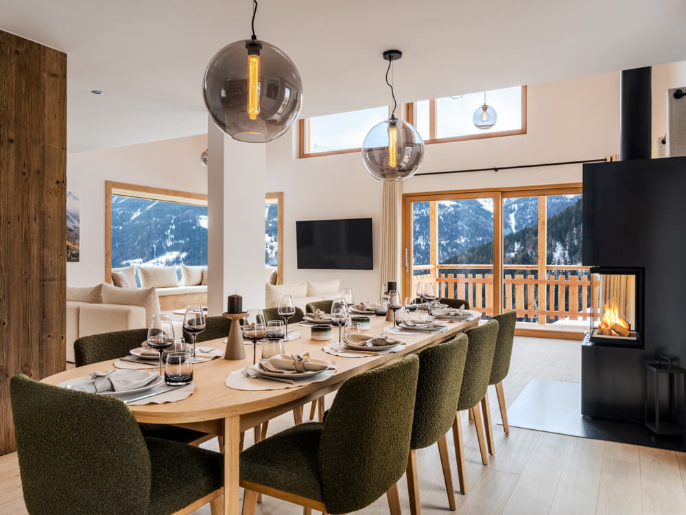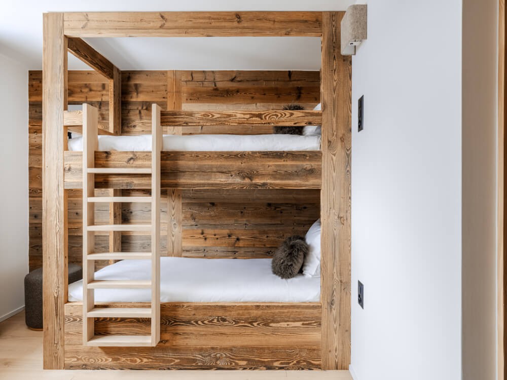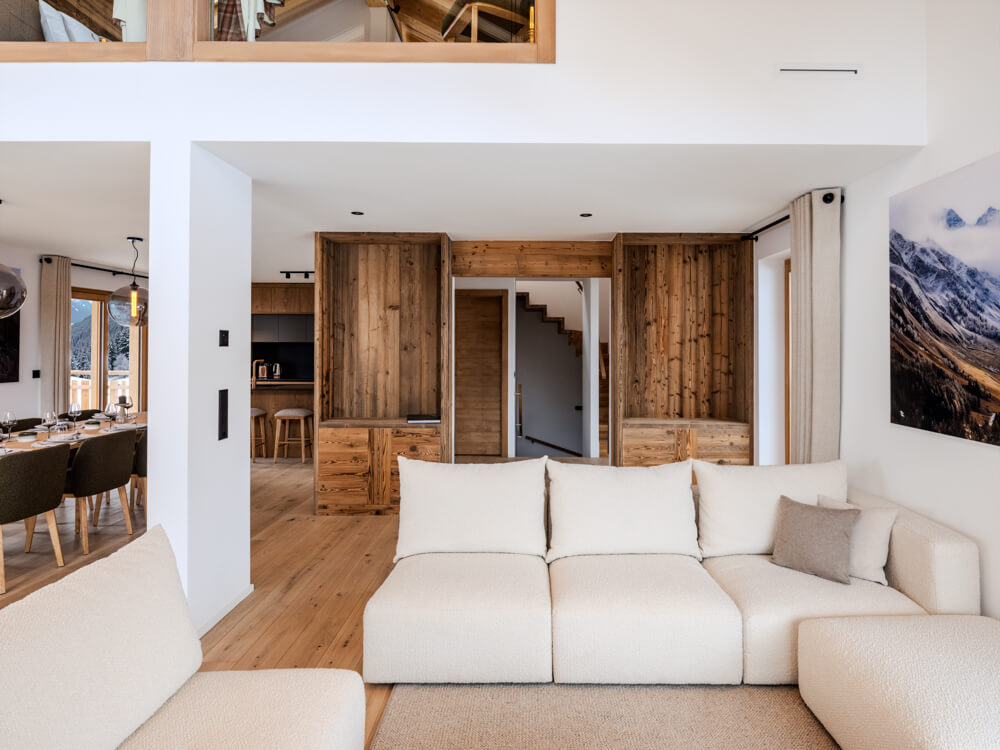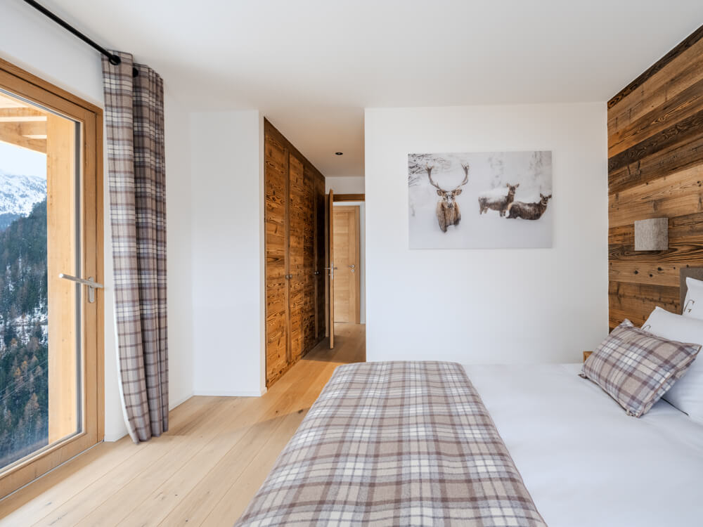 Ce chalet individuel sur quatre niveaux dispose de quatre chambres avec un lit double (180*200), d’une chambre avec deux lits superposés (90*200) ainsi que de cinq salles de bains attenantes avec douche. La pièce de vie bénéficie d'un coin salon avec une télévision, d'une cuisine toute équipée, d’un poêle à bois et d’espaces extérieurs offrant des vues dégagées sur les sommets environnants. Ce chalet s’ouvre sur toutes les expositions, pour une lumière et une vue changeantes tout au long de la journée. Il dispose d'appareils électroménagers tels qu'un lave-linge et sèche-linge, un lave vaisselle, une machine à café Nespresso, le nécessaire de cuisine, etc.