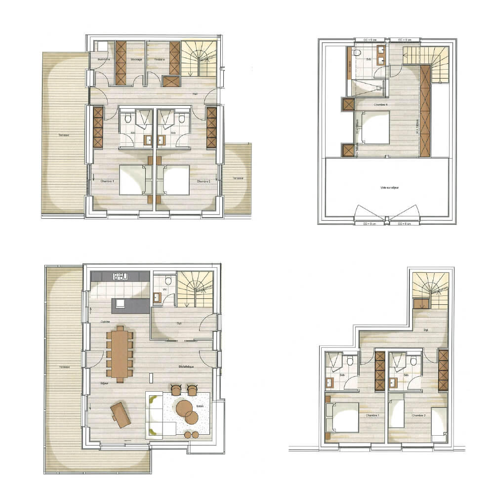 Ce chalet en quadruplex vous offre quatre niveaux de bonheur pour votre séjour à la montagne. Découvrez le plan intérieur de ce chalet pour comprendre son aménagement intérieur et profiter de superbes espaces de vie.