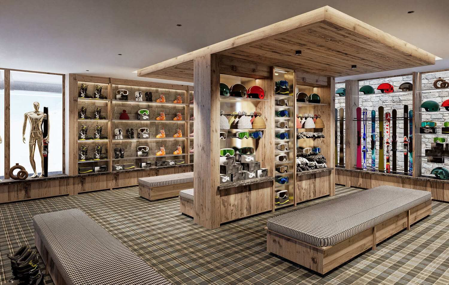 A l’entrée du resort, en parallèle de la piste de ski, élancez-vous presque skis aux pieds depuis la Ski Boutique. Location de matériel de ski, snowboard et raquette, vente de vêtements et accessoires techniques.